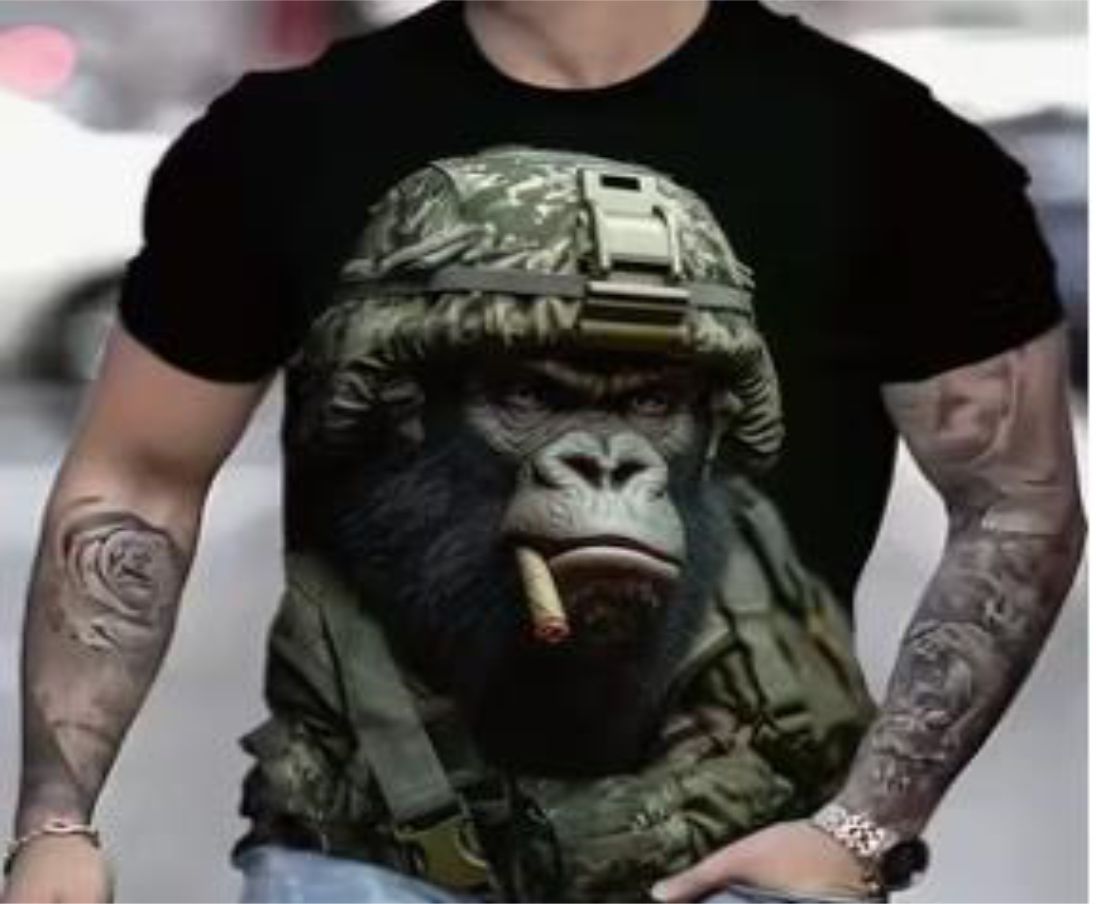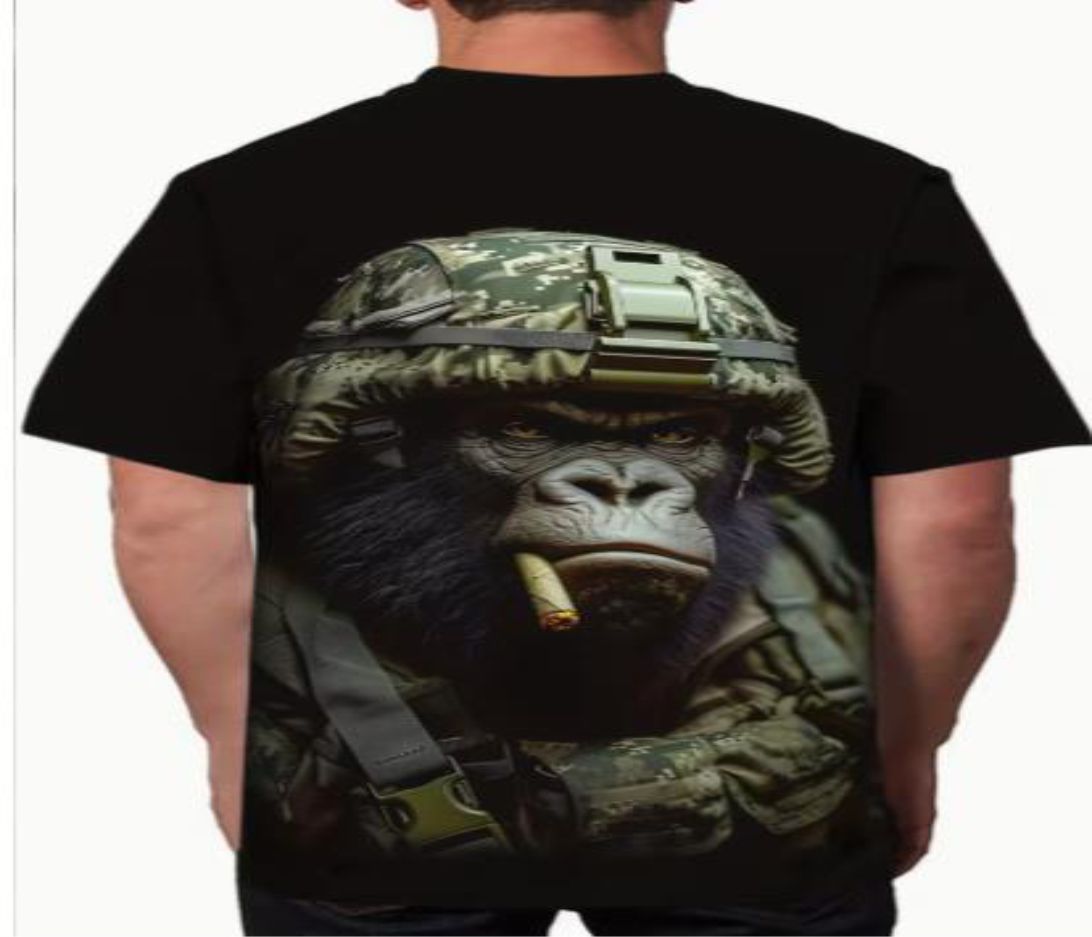 Camiseta para hombre con estampado de soldado gorila 3D, 100% poliéster, cuello